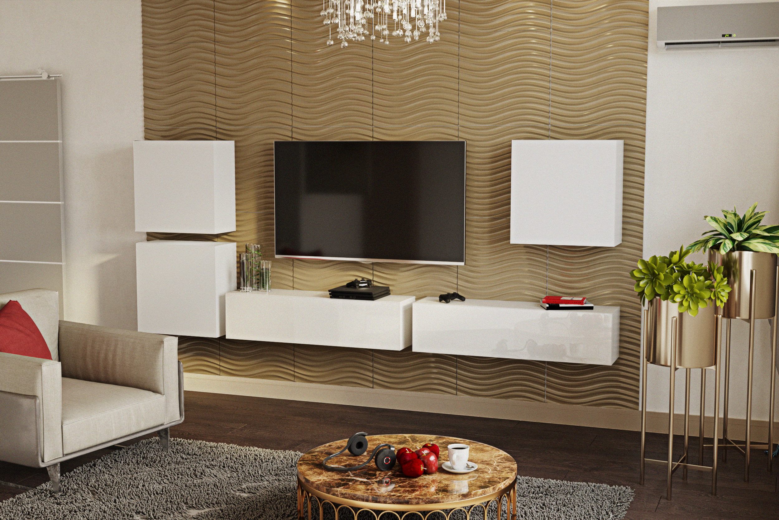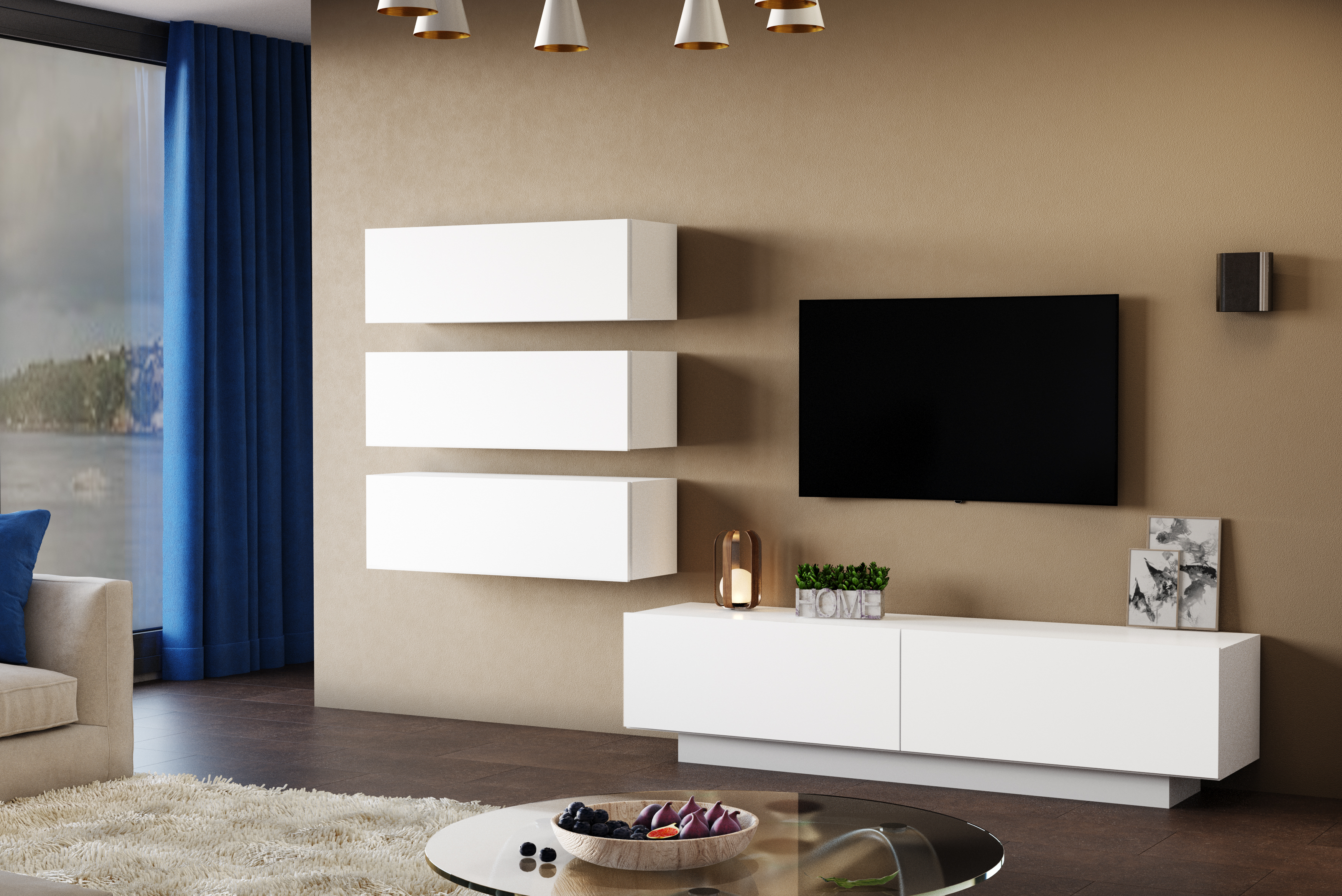 Описание ЛДСП корпус белый Фасад белый лак Тумба ТВ Длина 1800мм Высота 448мм Глубина 422мм Ромб Д 1000мм В 300мм Г 304мм